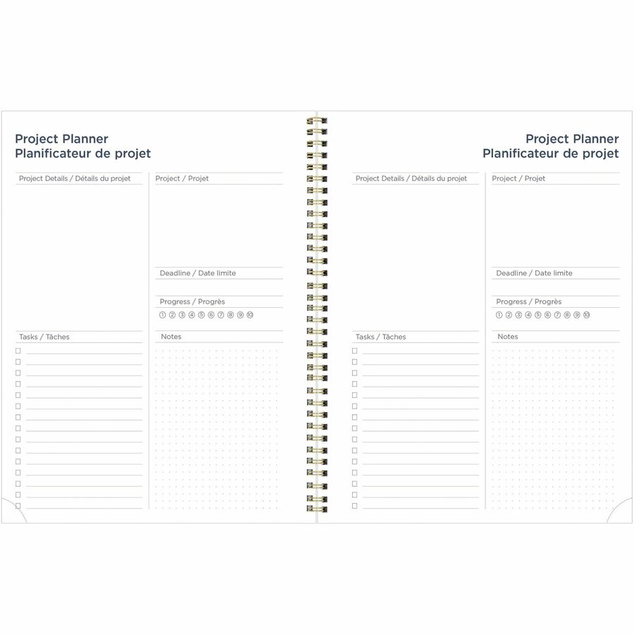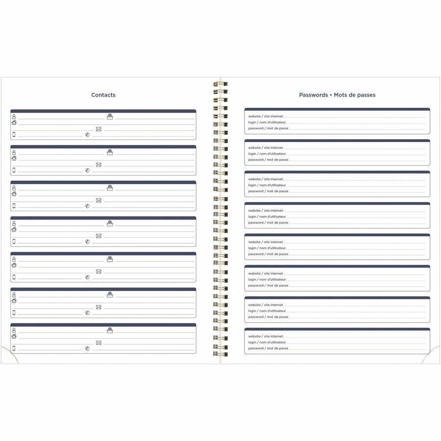 - Gold twin-wire binding with thick poly cover and golden foil details