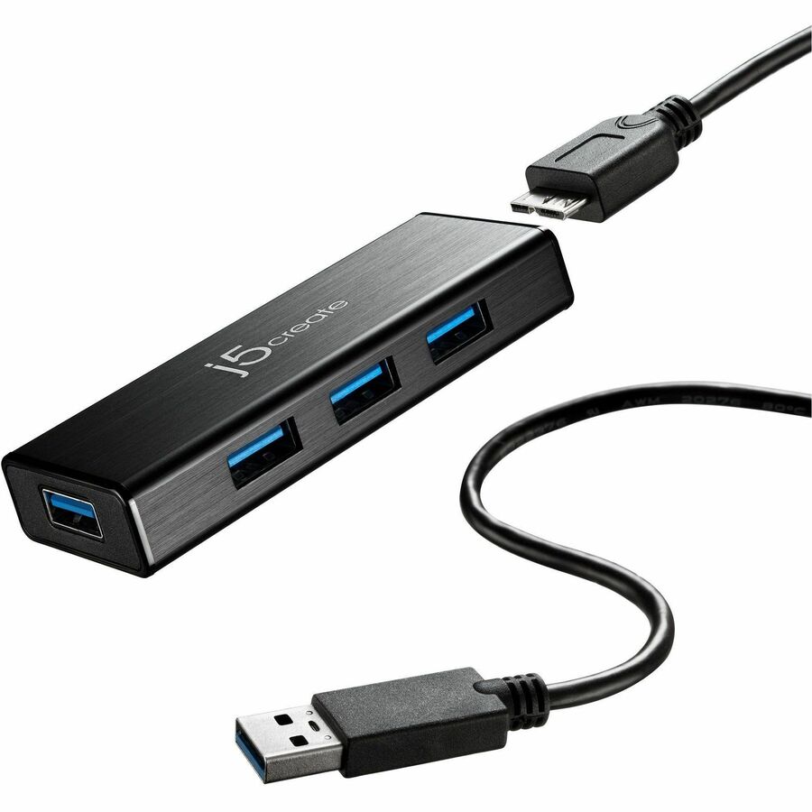 j5create USB 3.0 4-Port Mini Hub - USB 3.0 - 640 MB/s, 60 MB/s, 1.50 MB/s - Smartphone, Tablet, Webcam, Camera, Hard Drive - 4 USB Port(s) - 4 USB 3.0 Port(s) - PC, Mac