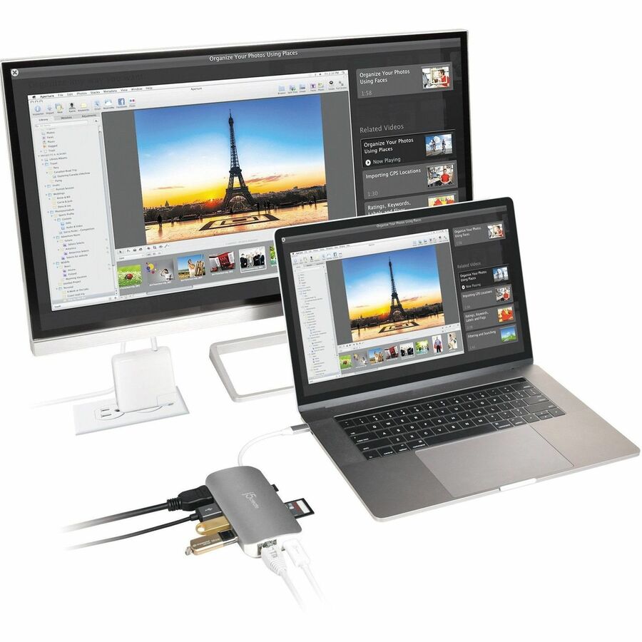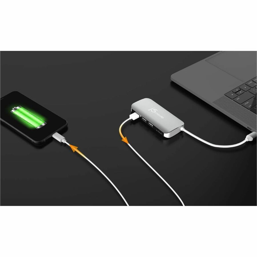 j5create USB-C Multi Adapter (9 Functions in 1) - for TV, Memory Card Reader, Mouse, Keyboard, Smartphone, Monitor, Notebook - Charging Capability - Memory Card Reader - SD, microSD - USB Type C - 1 Displays Supported - 4K UHD, 4K - 3840 x 2160 - 4 x USB