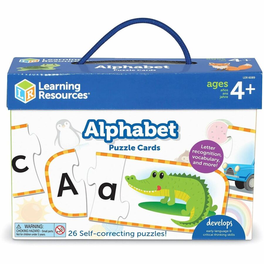 Build new kindergarten readiness skills, one piece at a time! Get your little ones learning and playing at the same time with the Alphabet Puzzle Cards. This set of 26 colorful three-piece puzzles helps kids master early alphabet and language skills through brain-teasing puzzle play. Each puzzle features one letter of the alphabet in uppercase and lowercase form, as well as a full-color image of a vocabulary word that begins with that letter; from alligator to zebra, your kids will pick up new language skills as they play. Designed with little ones in mind, each puzzle is self-correcting, which makes it easier for kids to puzzle out the one right answer. Each set of Alphabet Puzzle Cards comes in a sturdy reusable box that doubles as a storage container when play time is done.