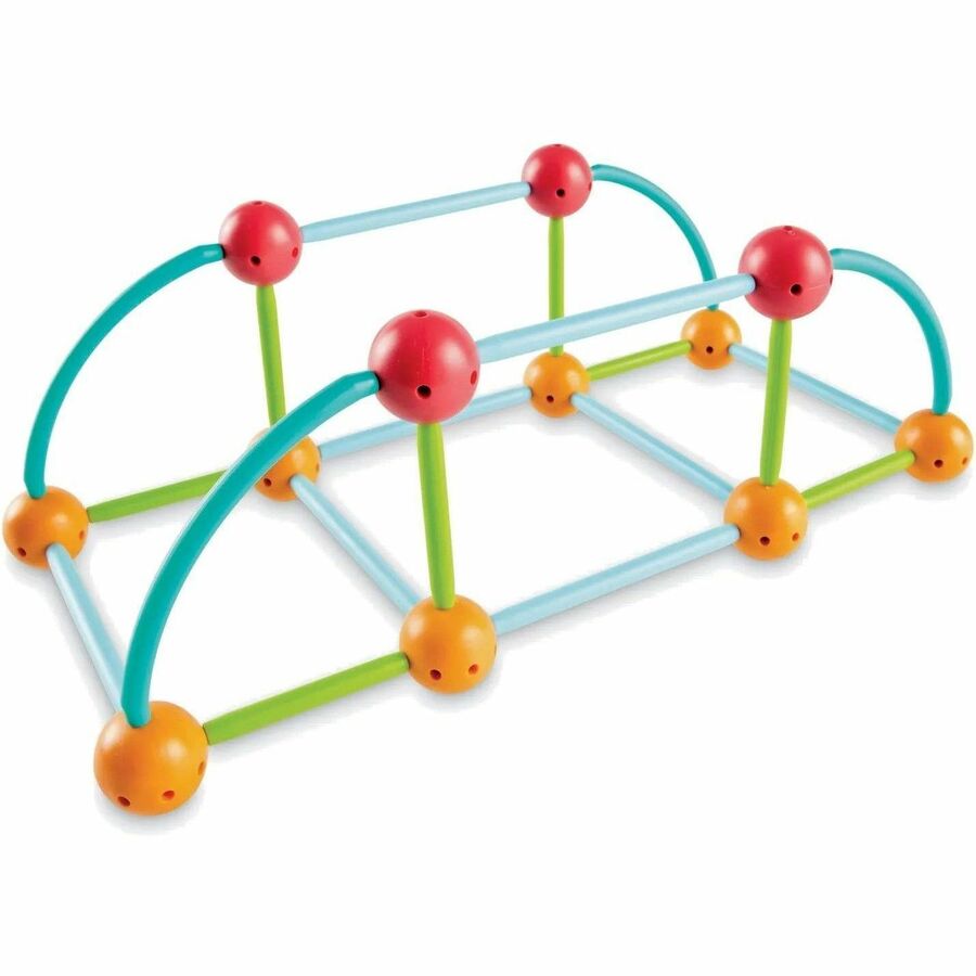 The world of early geometry skills takes shape! Kids craft their own 2-D and 3-D shapes during STEM-filled play sessions with Geomakers, one of the hands-on STEM Explorers activity sets. The set's included activity guide comes with 10 brain-teasing challenges, which help kids boost early geometry, critical thinking, and fine motor skills as they build shapes piece by piece. Challenges feature progressive difficulty and move from simple tasks like building shapes to more challenging tasks like designing and building bridges to help friends cross from one side to the other. In addition to STEM challenges, Geomakers also supports independent, open-ended play; this 59-piece set comes with enough sticks, curves, and connector pieces to help kids build triangles, rhombuses, trapezoids, or whatever wacky shapes they might dream up. STEM Explorers: Geomakers adds hands-on fun to math lessons, and helps kids build shape recognition skills every time they play.